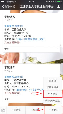 手机微信端关注“pa娱乐游戏官网就业服务平台”公众号,登录后需要和手机微信绑定,通过微信扫描进入“pa娱乐游戏官网就业服务平台”公众号进行操作。