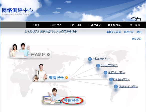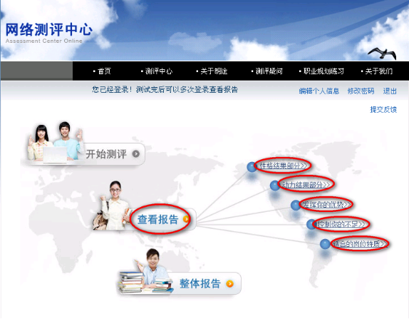 点击【查看报告】或者右边的几个文字链接,员工可以选择性地查看自己最想了解的部分。