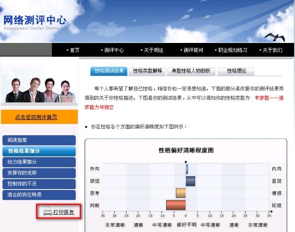 点击【整体报告】,或者在拆分版报告显示页面中点击【打印报告】,会跳出新的页面,员工可以看到报告的完整版。