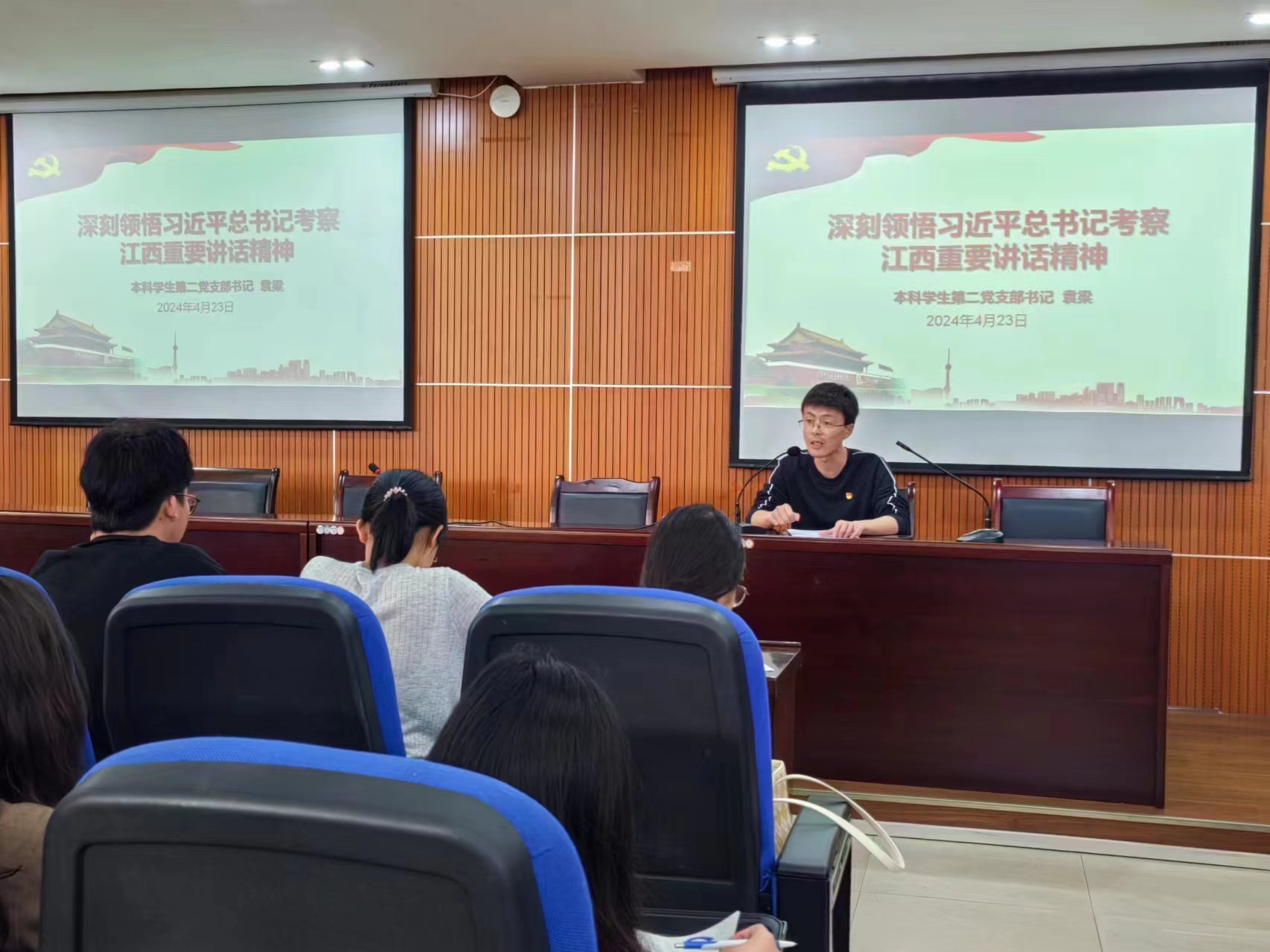 随后,本科员工第二党支部书记袁梁老师作《深刻领悟习近平总书记考察江西重要讲话精神》主题宣讲,强调要强化江西使命担当,聚焦走在前、勇争先、善作为的目标要求,努力在红色革命文化、乡村振兴等方面发挥专业优势,为谱写中国式现代化江西篇章贡献自己的智慧与力量。