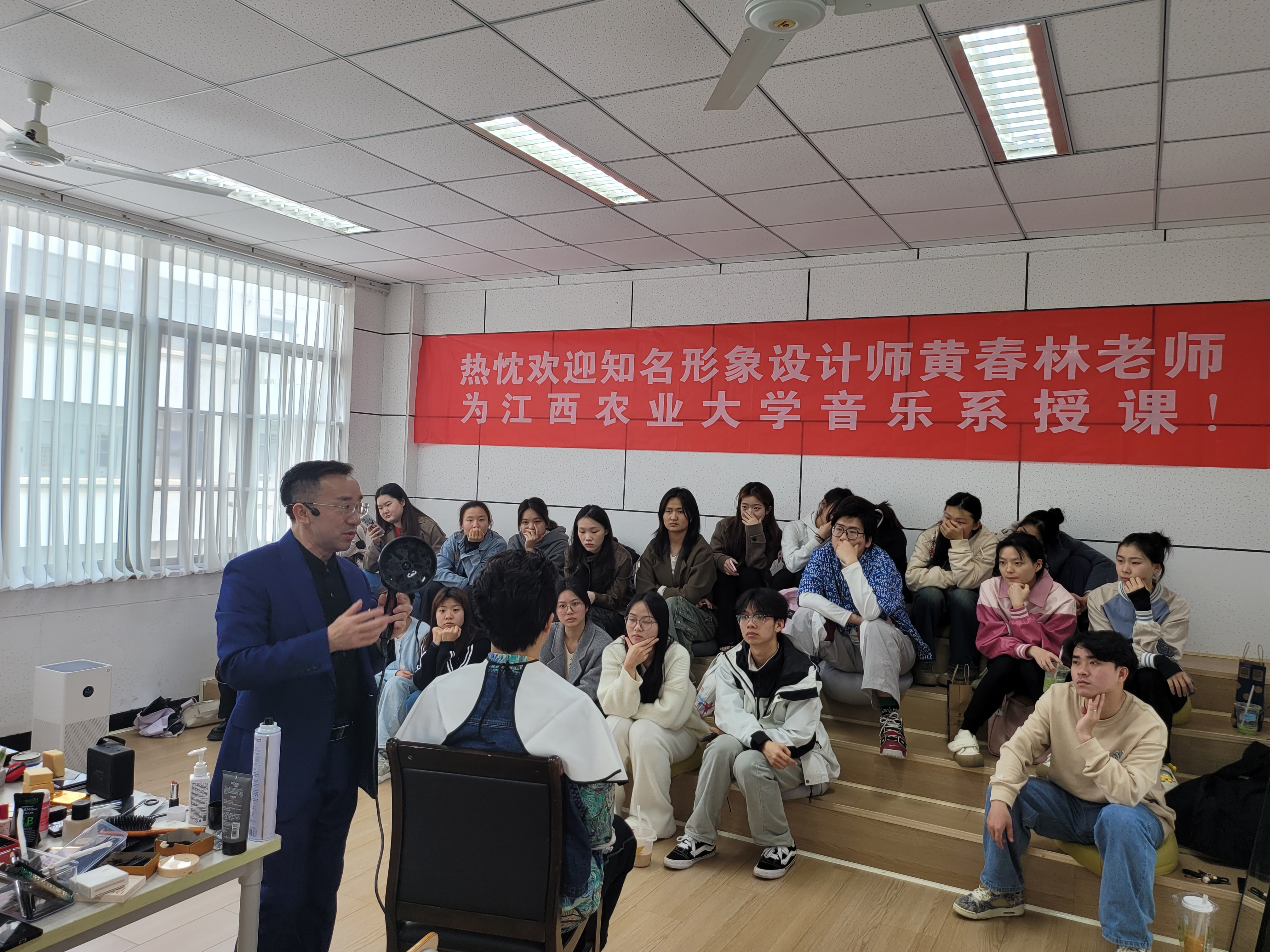 3月27日,知名形象设计师黄春林受邀来公司开展公益讲座,音乐系师生聆听了讲座。黄春林以其专业的知识和丰富的经验,为员工们带来了一场别开生面的形象设计讲座。黄春林详细讲解了形象设计的奥秘,通过给男生、女生进行个性化现场形象设计,分享了很多设计的实用技巧和方法。师生听完后,认为黄春林的讲座很实用,收获很大,提升了自己的形象塑造能力,提升了个体的气质和自信心。
