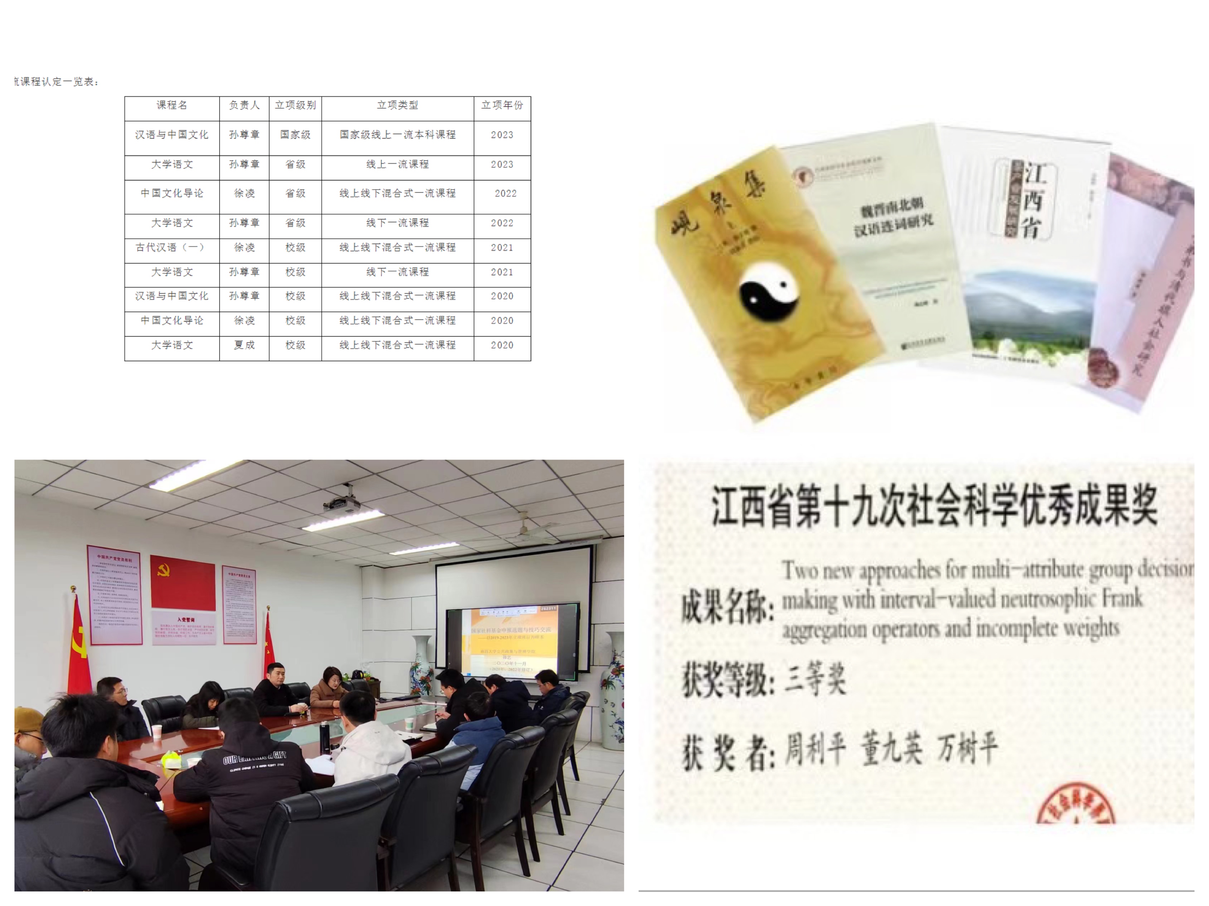 公司坚持以本为本,强化本科教学中心地位,扎实推进公司产品质量稳步提升。积极推进多元化教学的改革创新,成立了教学委员会和学术委员会,制定了团队建设发展规划,出台了本科教学成果研究项目资助办法、师生参加学科专业竞赛资助办法等,《大学语文》《中国文化导论》《汉语与中国文化》《公共事业管理学》等一批课程分别获得国家级线上一流本科课程、省级一流本科课程、精品在线开放课程、高校育人课程共享计划课程、防疫期间线上教学优质课等资助或奖励。获得省微课比赛、省高校青年教师教学竞赛、省移动教学大赛等省级教学竞赛奖近10项,获省级教学成果奖、校大北农教学精英奖等10多项,2位教师获评校“优秀教师”,1位教师获评“校所合作工作优秀教师”。1位本科生作为江西高校唯一代表获得全国员工“学宪法讲宪法”活动一等奖1项、江西赛区素养竞赛高校组特等奖1项;专业教师指导本科生参加专业类比赛、竞赛和展演获省级及以上奖励近400人次,创新创业类项目获批省级以上立项10余项。