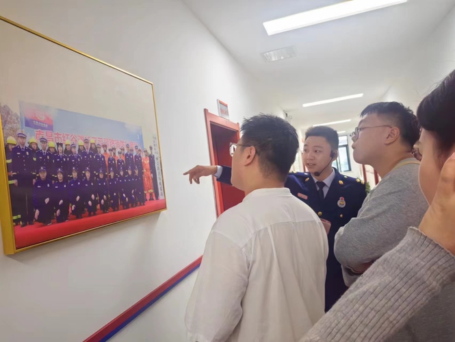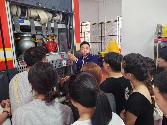 演出结束后,师生们开展参观学习活动,学习消防知识、参与消防活动。消防站的战斗班,规整的床铺、豆腐块似的被子和队员们整齐的内务、干净整洁的营区环境让师生们赞叹不已。消防车辆、灭火器材、个人防护装备等的零距离感受体验,让师生们学习了消防安全知识和应急综合技能。消防队员以实践行动践行习近平总书记提出的 “对党忠诚、纪律严明、赴汤蹈火、竭诚为民”,坚定的理想信念让师生们深受教育。