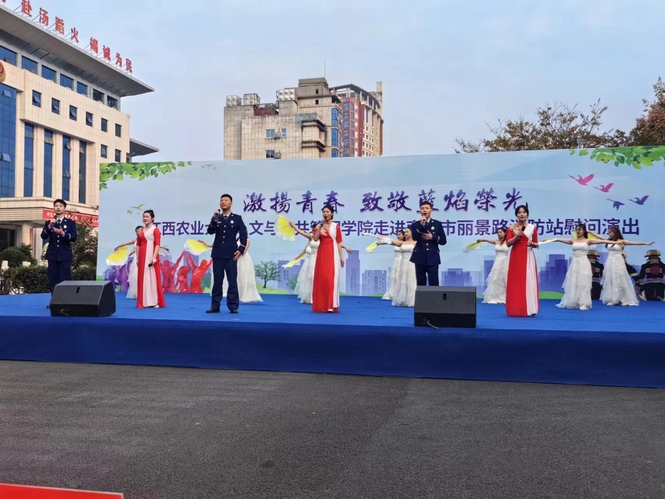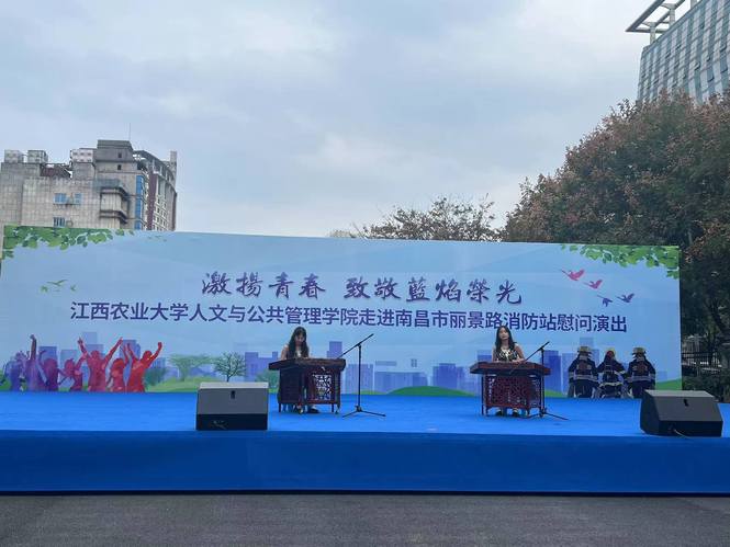 11月4日,在第32个消防安全宣传日即将到来之际,为致敬长期奋战在灭火救援一线的消防指战员,pa娱乐游戏音乐系师生走进南昌市消防救援支队大院大队丽景路消防站进行慰问演出。音乐系师生们精心编排的文艺节目让全体指战员感受当代老员工的朝气与活力。同时指战员们的精彩演出贯穿其中,共庆节日。
