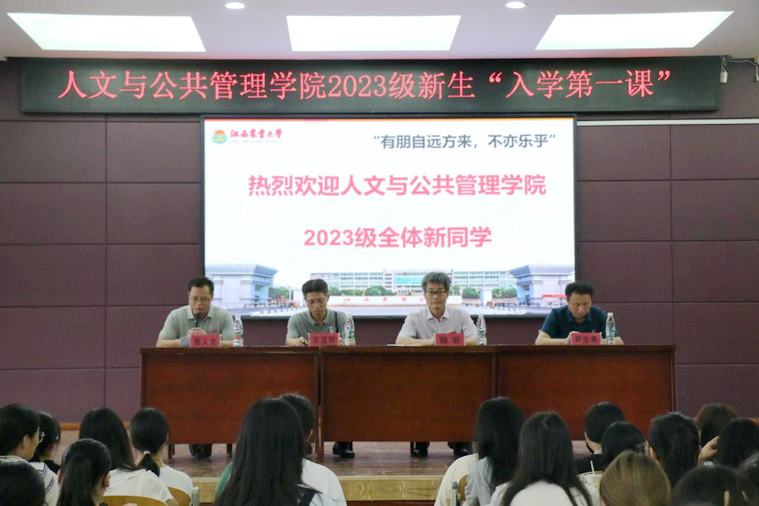 经理魏毅为新生讲授“开学第一课”,他围绕办学历程、人才队伍、学科专业、就业情况四个方面,详细介绍了公司的基本情况与办学特色,使新生对公司有了进一步了解。同时,他寄语2023级新生,崭新的时光已经开启,希望同学们怀揣勇气与梦想,为成长为一名“国民表率、社会栋梁”而不懈奋斗。法学202301班顾惜月代表全体新生表示,选择成为江农人,就要担当起对共同理想的责任,奋发图强、砥砺前行。公共事业管理202101班李毅辉作为老生代表,对2023级新生的到来表示了欢迎,与新同学们分享了一些独特的感悟,希望他们牢记“团结、勤奋、求实、创新”的精神传承,在自己所热爱的方向,开创出一片新的天地。党委副书记曹人龙转达了公司党委书记杨峰对同学们的希望,勉励同学们坚定理想信念,继承发扬公司“厚德博学、抱朴守真”的优良传统,成为堪当大任的时代新青年。