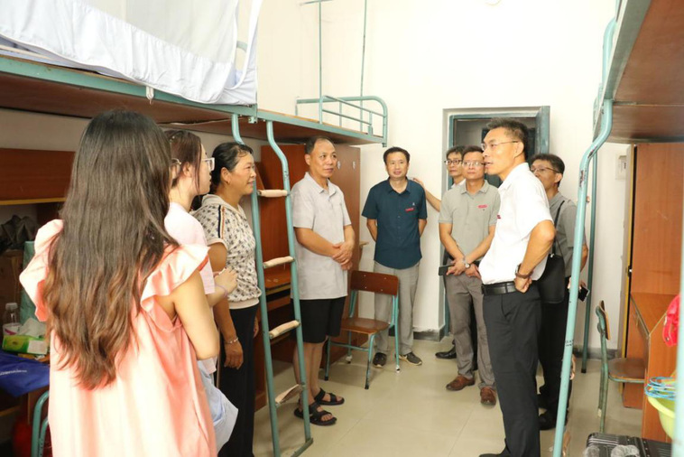 宿舍走访,师长叮嘱有关怀。公司党委书记杨峰、经理魏毅等公司领导带队深入员工宿舍,亲切看望新生。过程中,领导、老师们为家长和新生介绍了公司的团队力量、教学条件等情况,围绕员工学习和生活两大方面进行交谈,解答家长疑惑,让家长放心、安心。与此同时,他们耐心询问新生的生活习惯和适应情况,了解新生的入学感受,对宿舍安全问题加以叮嘱,并鼓励新同学要养成良好的生活习惯,尽快适应新环境,在新学期以崭新的姿态、昂扬的斗志在这片全新的土地上追寻青春梦想。