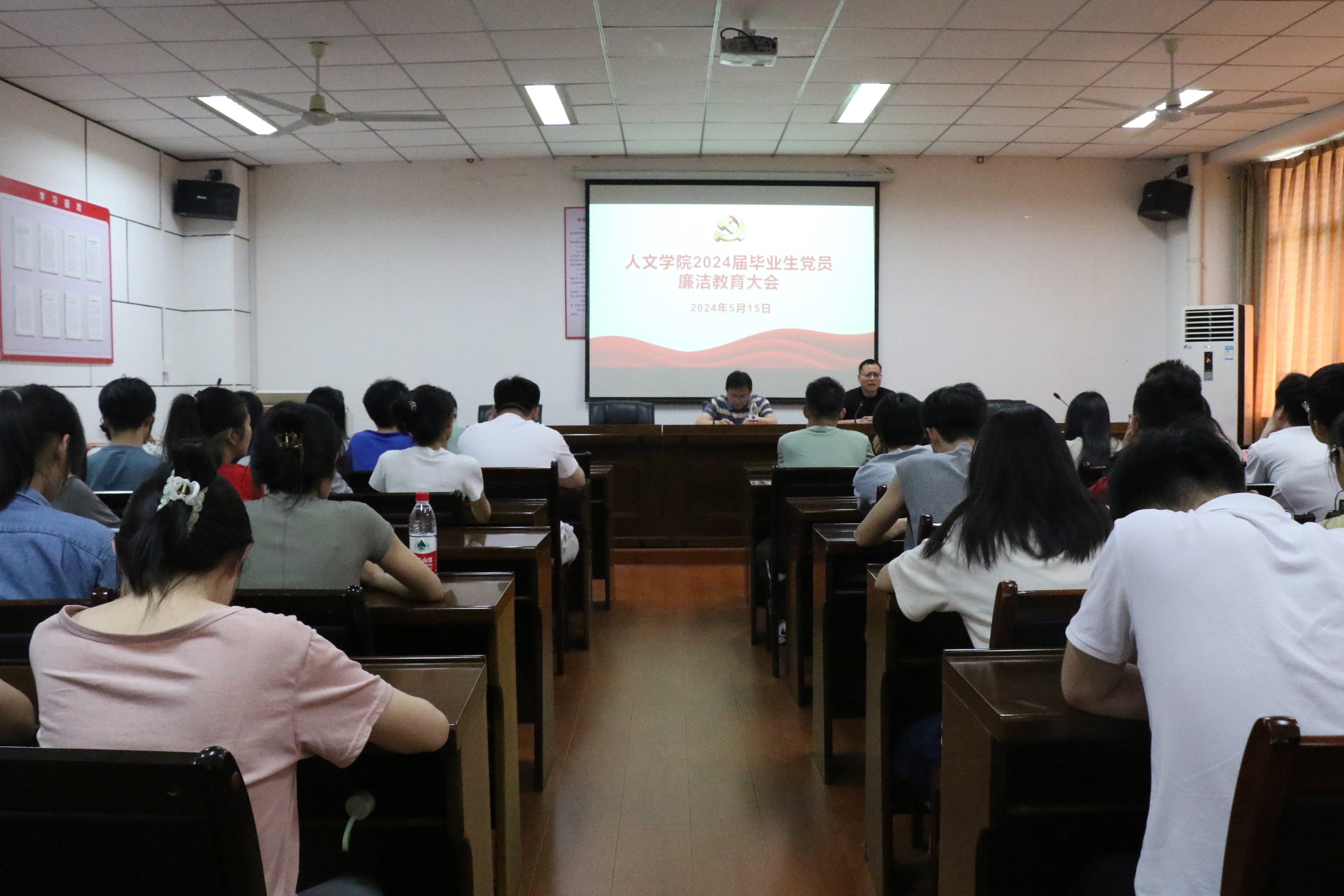 为深入开展党纪学习教育,扎实推进党员廉洁教育,引导毕业生党员廉洁修身、廉洁从业,5月15日下午,公司在院办215室召开2024届毕业生党员廉洁教育大会。学公司党委书记曹明星,员工党支部书记、2024届毕业生党员参加会议。学公司党委副书记曹人龙主持会议。