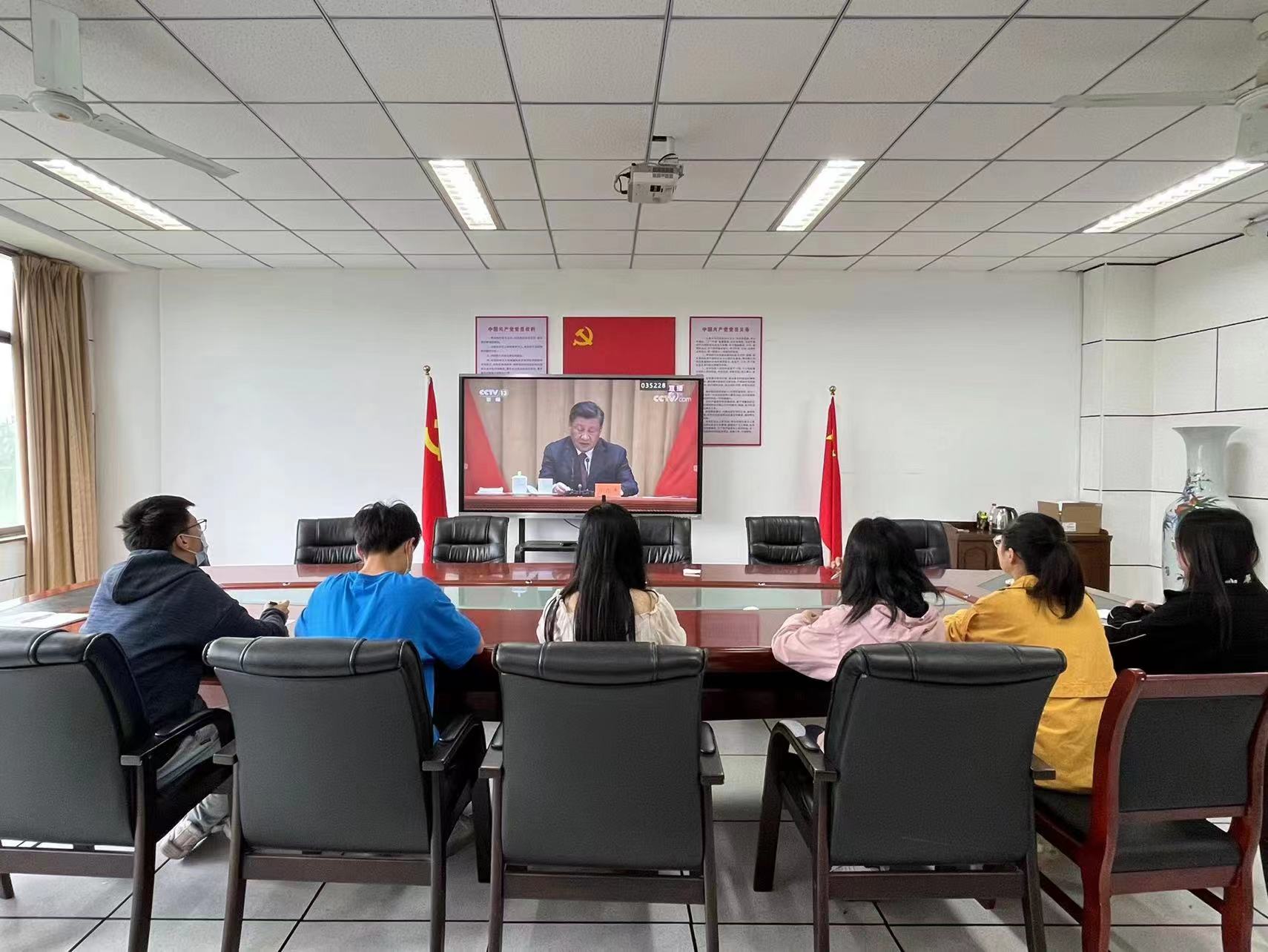 2022年是中国共产主义青年团成立100周年。5月10日上午,庆祝中国共产主义青年团成立100周年大会于人民大会堂隆重召开。公司通过线上线下的方式,组织全院师生收听收看大会直播,聆听总书记的重要讲话,畅谈学习体会。公司在院办小会议室设立会场,组织全体政治辅导员、院分团委员工干部集中观看,各班团支部组织同学在宿舍实时收看大会直播。