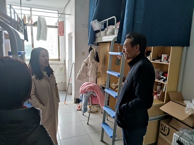 1月28日,在中华民族传统节日春节即将来临之际,公司党委书记杨峰和班主任金怡老师、辅导员袁梁老师一起来到员工宿舍,走访慰问了公司寒假留在公司的同学们。