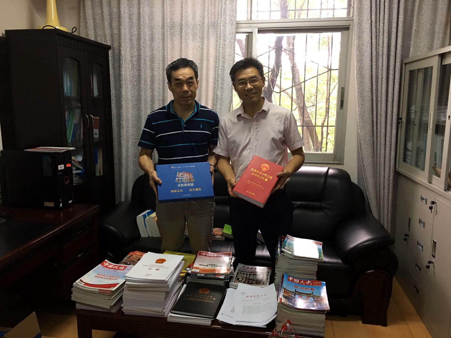 全国人大代表魏洪义教授在履职中,按照统一安排开展执法检查和专题调研,收集了一批有关国家治理、依法治国的图书文献资料。在与公司负责人交谈得悉这些资料对公司专业建设有帮助后,他无私地将这些难得的图书资料慷慨捐赠,并表示只要公司教师开展教学科研用得上,愿意继续帮助收集有关图书资料以支持公司建设。