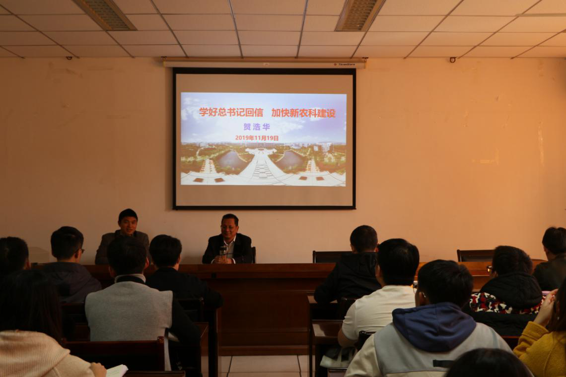 11月19日下午,公司党委委员、副董事长贺浩华以“学好总书记回信,加快新农科建设”为题,在厚德楼院办215室为公司师生党员上了一堂深刻、精彩的专题党课。