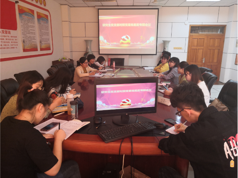 继公司党委领导班子对照党章党规找差距专题会议后,公司各党支部同期部署、及时跟进,同向同行、协同发力。四个党支部于11月5日,在院办215室(教工党支部)、205室(研究生党支部)、504室(本科生两个党支部)同时召开对照党章党规找差距和不足专题会议,会议由各支部书记主持,3位院领导深入分管联系支部进行指导。