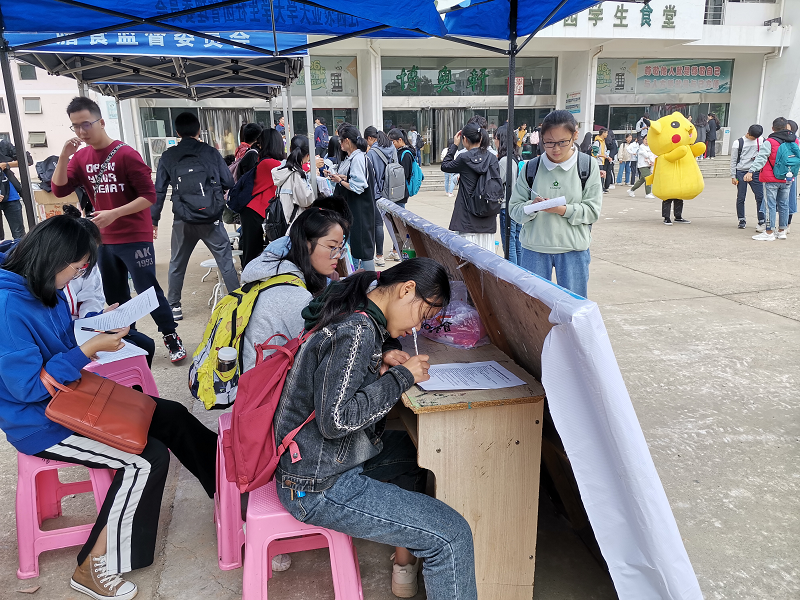 三天来,老员工法律协会协会在北区食堂门口通过摆设宣传点及发放反校园诈骗试题问卷的方式进行宣传。问卷试题共分选择题及主观题两种类型,主要以反诈骗主要形式、受骗后处理方式、相关法律依据为测试重点,有助于同学们了解常见诈骗手段,提高对诈骗的认识。现场同学积极参与答题,反响激烈,协会根据同学们的答题情况进行排名,给予一定奖励,让同学们在轻松娱乐的氛围中学习到预防诈骗的技巧。