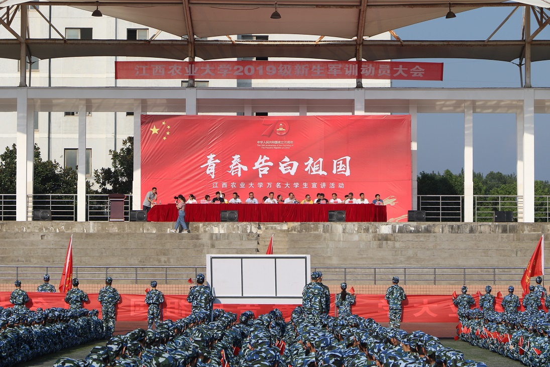 训青年体魄,立凌云壮志。9月19日上午,公司2019级新生军训动员大会在东区运动场举行,副董事长许斌华,各公司、各有关职能部门负责人出席了此次大会。许斌华副董事长亲切问候全校新生并对军训提出相关要求,教官和新生代表发言为军训助威。最后,公司新生歌唱祖国,以饱满的精神,整齐地列队宣告军训的正式开始。