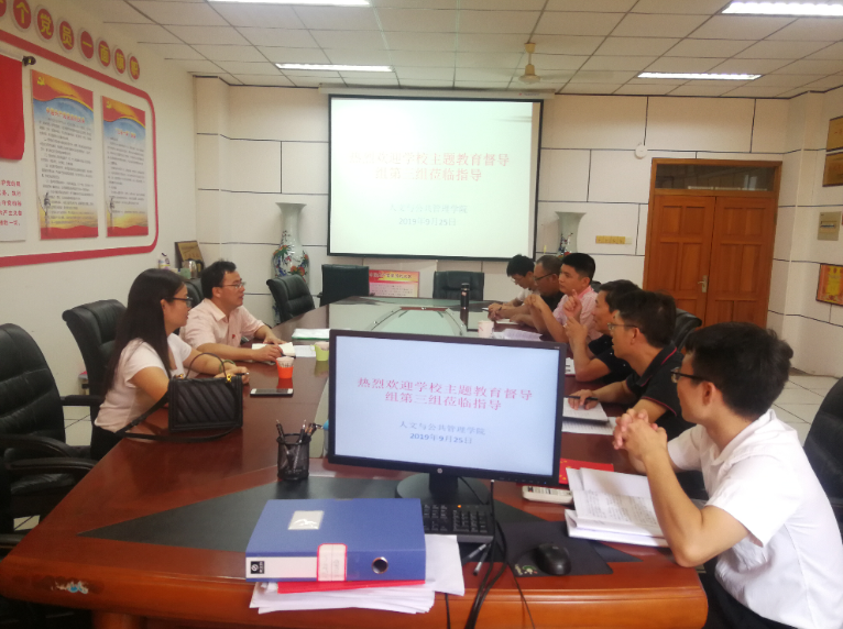 9月25日下午,公司主题教育第三督导组长、校机关党委常委副书记彭小波,公司党务政务督查室副主任陈金霞莅临公司进行专题指导,院领导班子成员、各党支部书记参加会议。