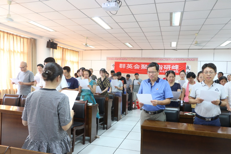 为积极贯彻落实“不忘初心、牢记使命”主题教育精神,切实加强教师队伍作风建设,9月17日下午,公司在院办大会议室举行了全体教师师德集体承诺宣誓活动,活动由公司党委副书记王志发主持,音乐系国家二级普通话测试员范凌云老师领誓。