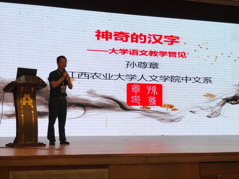 研讨会上,孙尊章老师作为嘉宾进行了示范教学。孙老师以公司大学语文开设的历史、现状和教学特色为切入点,分享公司将中华优秀传统文化融入大学语文教学的成果与经验,并向与会老师推荐由公司本专业老师共同编写的大学语文教材。紧接着,以超星“学习通”为例,探讨了移动教学模式对大学语文教学的积极推动作用,且以“神奇的汉字”为主题进行了示范。孙老师的示范教学深入浅出、幽默生动,引起了与会老师的浓厚兴趣。公司作为农业院校,坚持在全校将大学语文开设为公共必修课的做法,得到了大家的一致认可。