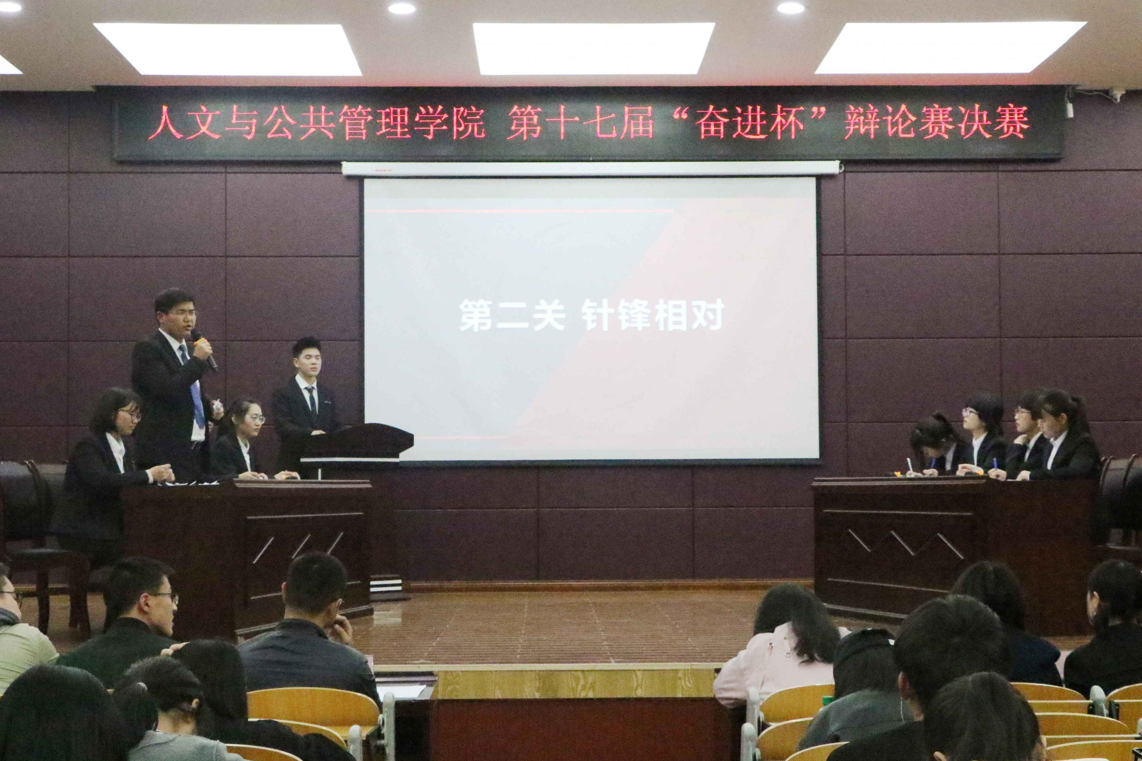 为培养公司学子的逻辑思维和语言表达能力,丰富员工的课余生活,公司于4月10日晚在老员工活动中心501音乐厅成功举办第十七届“奋进杯”辩论赛决赛,公司中文系主任孙尊章老师、团委指导老师袁梁和现场观众一同观看了本次比赛。