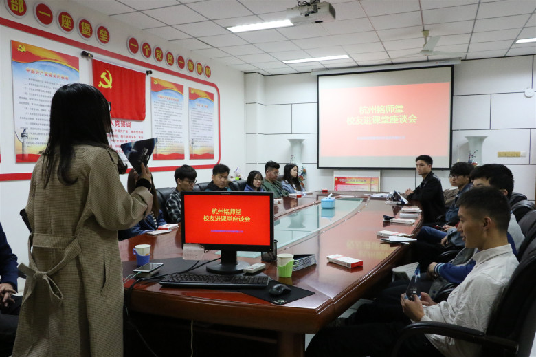 本次座谈会的主讲人是在杭州铭师堂教育公司工作的员工,她简单叙述了自己在校期间的经历,以及进入铭师堂公司后逐步成长成为中层管理干部的历程。之后,易娇员工为员工们播放了相关纪录片,并且热情回答了到场员工提出的问题。最后,铭师堂人力资源负责人吕晓芳作了总结,鼓励在场员工积极准备,参与公司举办的专场招聘,并祝愿大家都能走上自己理想的职业道路。