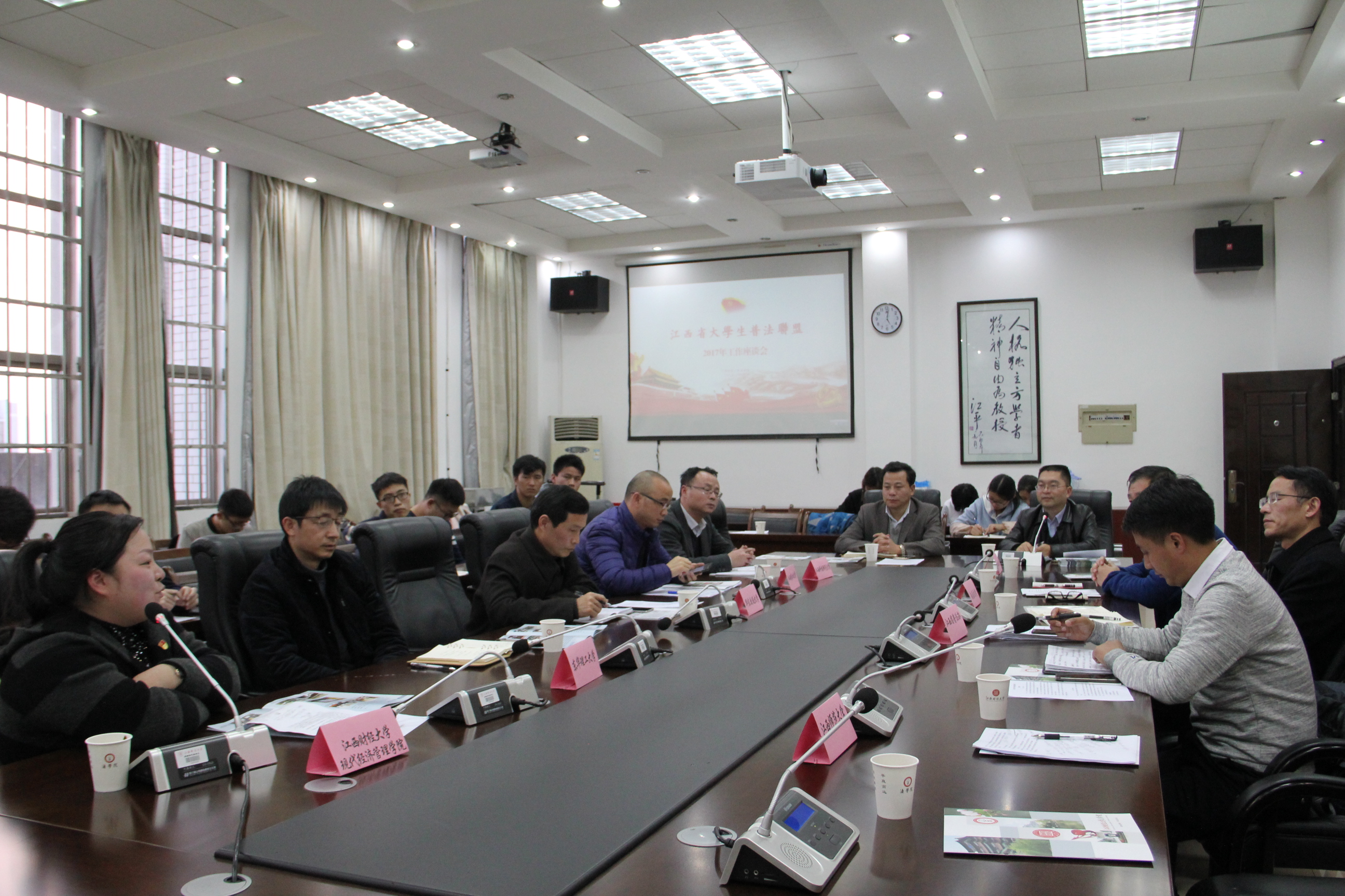 二、普法联盟座谈会:12月4日,宣讲团组长陈小志带队参加由江西财经大学组织的江西省老员工普法联盟2017年工作座谈会。会上陈小志老师结合公司涉农特色,将普法与农村扶贫工作紧密结合,汇报学法普法宣传工作,交流学法普法宣传经验,得到会上一致好评。