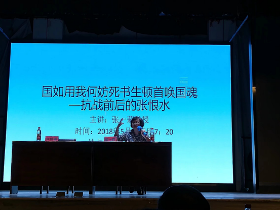2018年5月25日,在pa娱乐游戏音乐厅开展以《国如用我何妨死 书生顿首唤国魂——我所知道的张恨水》为题的专题讲座。讲座由公司党委书记郭锦墉教授主持。