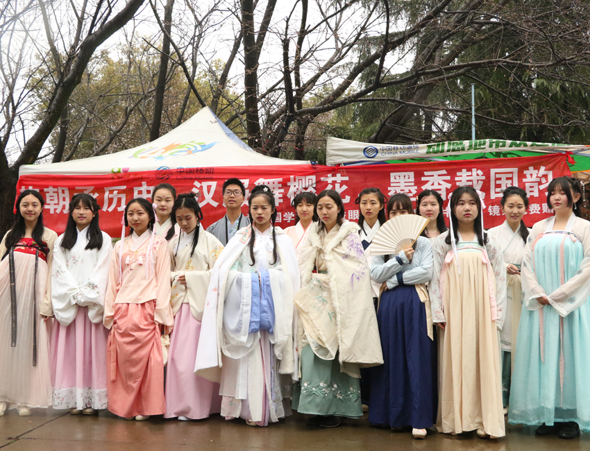 活动以“花朝承历史,汉服舞樱花,墨香载国韵”为主题,分为祭花神和祈福两个环节。首先进行的是祭花神环节,兰芷国学社汉文化研究部部长罗嗣芳作为赞者宣布祭祀开始,社员身着汉服三拜花神,十二位花司分别上香,后主祭为花司簪花,以全体同胞再拜花神为结尾,祭花神活动圆满成功。之后的祈福活动在南区樱花树下进行,社员们热情邀请在场同学一同祈福,在红卡片上写下自己的祝福,并挂在樱花树下以寄托美好的愿望。