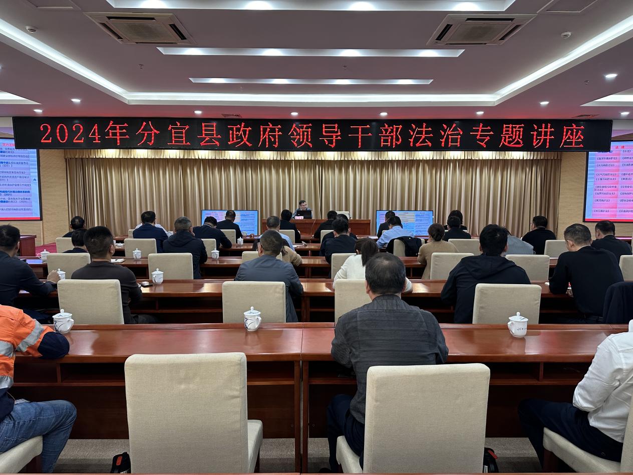 根据《省委全面依法治省委员会省领导挂点联系指导县(市、区)法治建设工作方案》部署,第十四小组由省检察院牵头,pa娱乐游戏官网、省法律顾问、新余姚健律师事务所作为成员,挂点联系分宜县。10月30日,公司林家鑫博士受邀赴分宜县政府作了题为《高水平生态环境法治保障高质量发展》的专题讲座,讲座由分宜县副县长蒋晓斌主持,县委副书记、县长谢淘、副县长张小兵、黄磊、晏志刚及全县职能部门负责人出席。