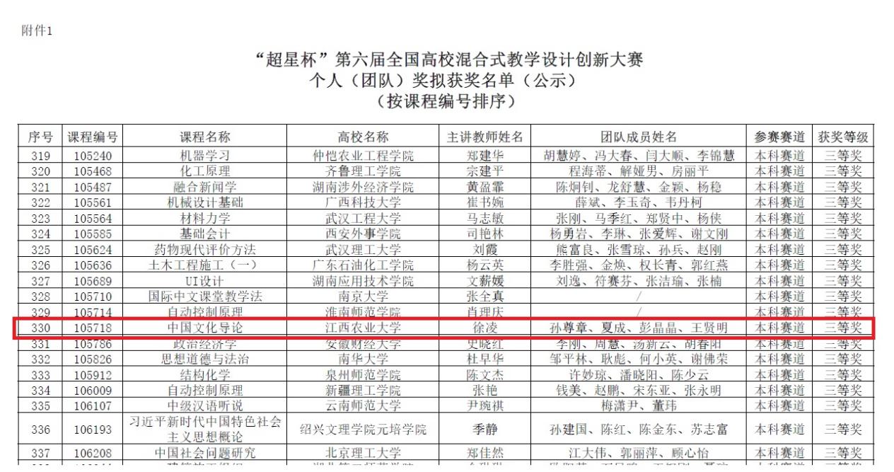 12月29日,“超星杯”第六届全国高校混合式教学设计创新大赛在西安电子科技大学落下帷幕。公司徐凌老师主讲的“中国文化导论”课程(团队成员:孙尊章、夏成、彭晶晶、王贤明)荣获大赛三等奖。全国高校混合式教学设计创新大赛致力于挖掘、培育并展示教师混合式课程建设及教学设计成果,促进高校数字化公司产品改革。本届大赛共有包括清华大学、上海交通大学等全国415所高校(本科院校351所,高职院校64所)参赛。大赛已被中国高等教育学会纳入《全国普通高校教师教学竞赛分析报告》及《全国普通高校教师教学发展指数》的数据统计范畴,成为衡量高校教师教学发展生态的一个重要标尺。