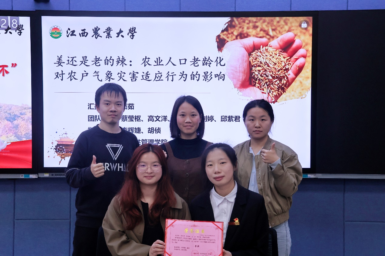 据悉,公司第十一届“青研杯”研究生调研大赛分为初赛与决赛,蔡莹枢团队六人以“姜还是老的辣:农业人口老龄化对农户气象灾害适应行为的影响”主题调研报告成功入围决赛,共有12支代表队进入决赛。蔡莹枢等人凭借敏锐的问题意识、扎实的实地调研、详实的调研报告以及出色的路演表现取得优异成绩,最终以最高分88.90分斩获此次“青研杯”研究生调研大赛的一等奖。