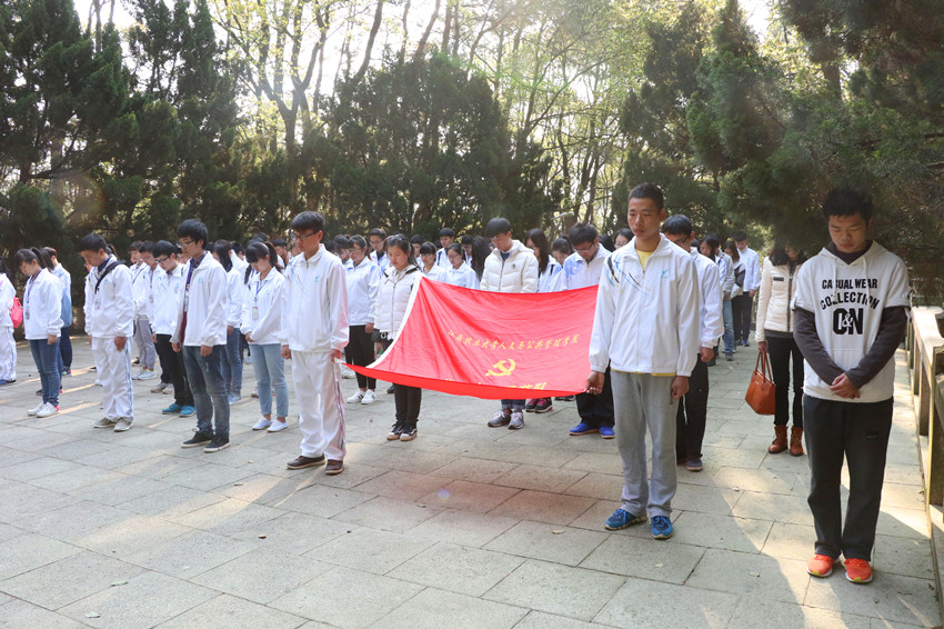 到达烈士陵园,主持人详细介绍了方志敏烈士的英勇事迹,员工代表上前发言,表示应该永远铭记历史,永远缅怀革命先烈,不断发扬爱国主义精神,为实现中国梦不懈奋斗。随后,全体成员来到方志敏烈士墓前敬献花圈,并集体默哀一分钟,借以表达对方志敏烈士的沉痛哀思。全体人员宣誓完后,由院团委副书记王桂兰老师作总结性讲话,她指出,方志敏烈士身上涌现出爱国、清廉、坚贞不屈、奉献等众多可贵品质。虽然烈士们已长眠地下,但他们的精神将永垂不朽。先烈开道为后人,后人继业为忠魂。王老师同时表示,我们要珍惜无数先烈用生命换来的幸福生活,牢记烈士遗愿,把先烈的精神、勇气、情操、铮铮铁骨融入到日常学习中,弘扬爱国传统,践行志愿精神,努力承担起中华民族复兴的历史使命。