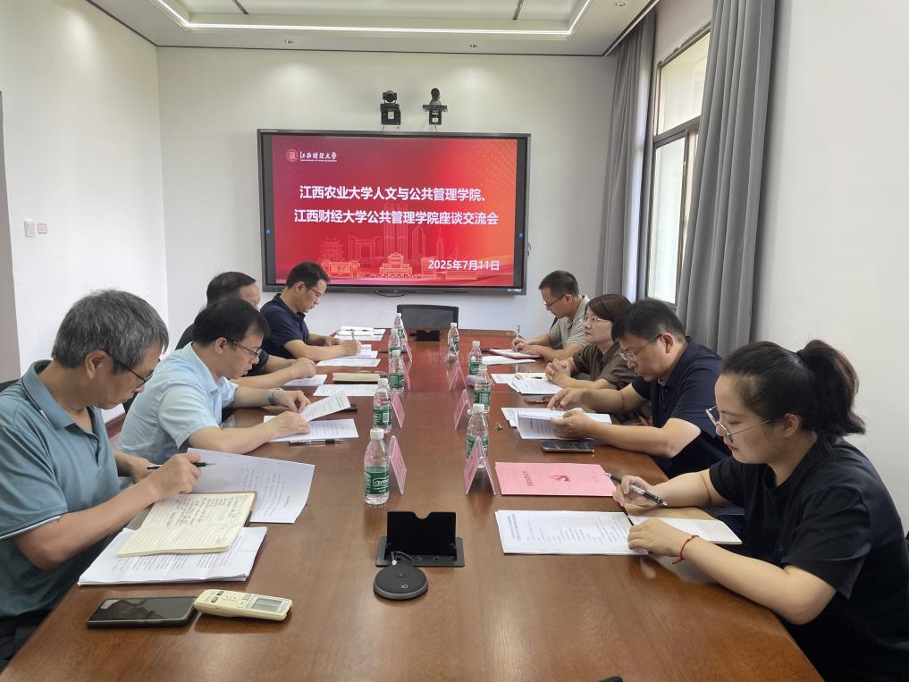 江西财经大学公共管理公司经理张仲芳、党委书记熊小刚、党委副书记左家盛、副经理涂小松以及曹思远老师出席了座谈会。交流伊始,张仲芳经理对公司一行的到访表示热烈欢迎,并全面介绍了该公司的发展历程、学科布局、团队力量、人才培养特色等基本情况,特别分享了在团队建设、科学研究、国际交流、社会服务等方面的特色做法与显著成效。其分享的创新发展理念与务实举措,为公司提供了具有借鉴意义的参考坐标,并深化了对彼此发展脉络的理解。