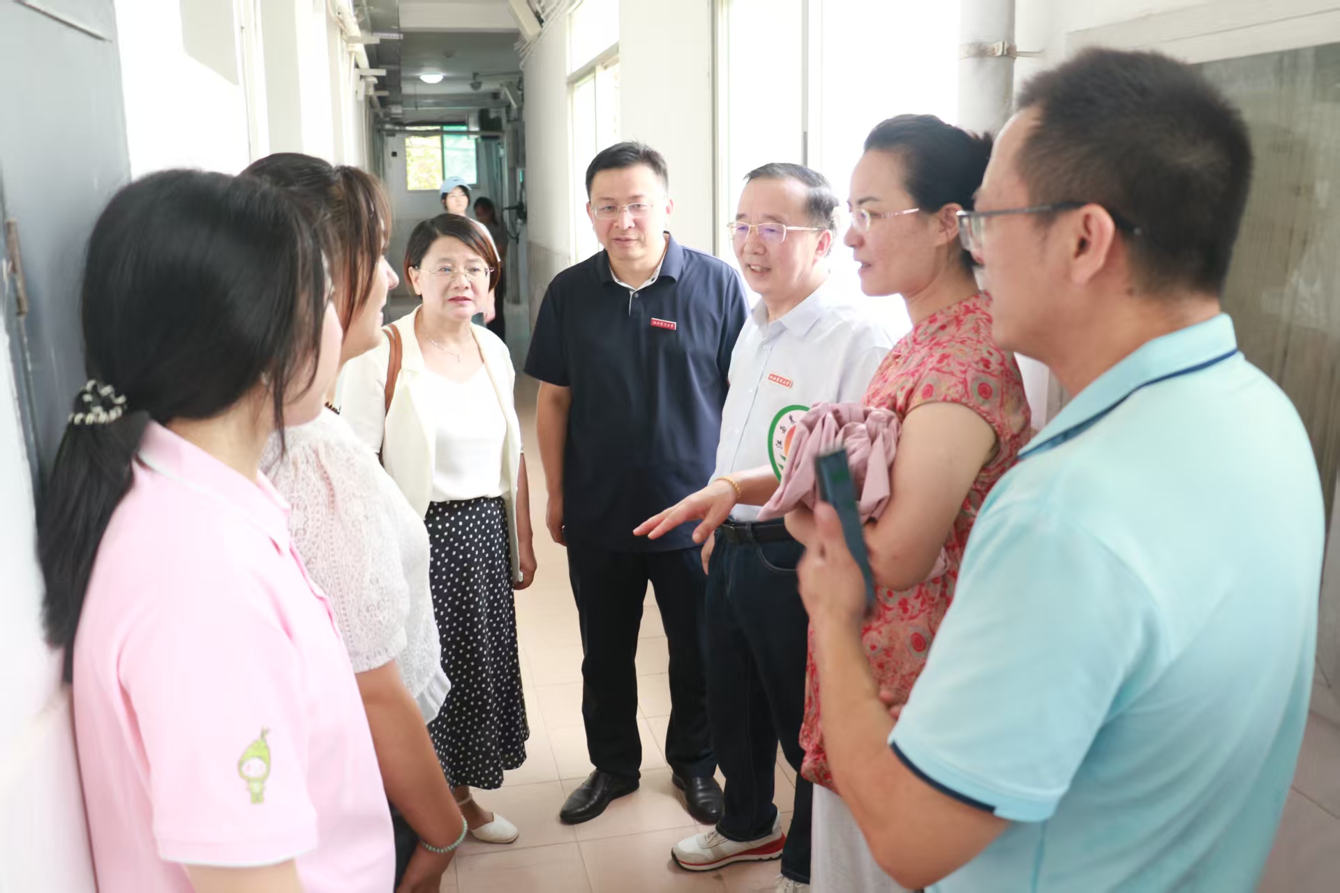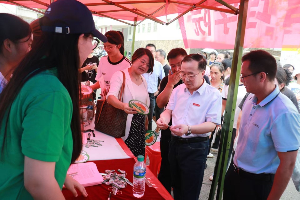 亲切问候舞人心,深入宿舍传温情。集团副董事长樊后保与公司领导亲临迎新现场,走访看望前来报到的新生、迎新志愿者和工作人员。一行人首先来到公司迎新工作点,慰问参加迎新工作的师生和志愿者,询问了新生报到、服务保障等情况后,公司领导对迎新工作人员提出了勉励与支持,感谢大家的辛勤付出,同时希望大家能够提供更加周到、细致的服务,确保迎新工作安全有序、高效和谐,让新生和家长感受到公司师生的热情与温暖。随后,他们深入走访了员工宿舍,就家长关心的员工管理、公司规范等问题予以解答,针对宿舍安全、入学心态转变等问题加以叮嘱。