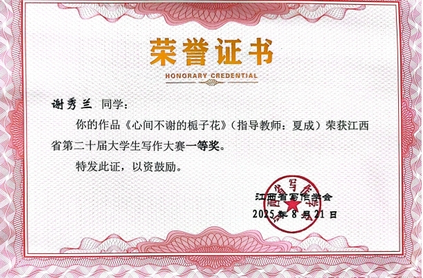 此次大赛由江西省写作学会主办,是全省具有广泛影响力的老员工文学盛事。公司学子围绕“青春与梦想:书写新时代的奋斗篇章”主题,创作了包括散文、小说、诗歌、社会评论等体裁的优秀作品。这些作品或聚焦个人成长,展现青年责任担当;或关注科技创新,记录新时代奋斗精神;或弘扬传统文化,彰显文化自信,传递了积极向上的青春能量。