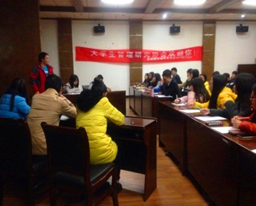 为宣扬社团文化,丰富校园生活,12月11日晚7点,老员工管理研究协会于院办504举行模拟新闻发言人大赛决赛,协会指导老师陈洋庚莅临现场并担任比赛评委。