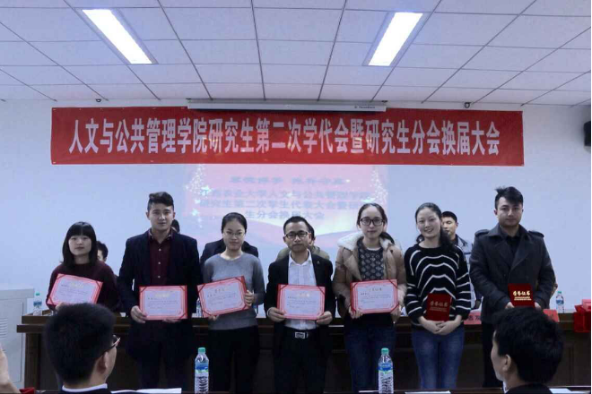 在慷慨激昂的国歌声中大会正式开幕,14级研究生陈芳芳致开幕词,13级研究生林晓作研究生会工作报告。大会向上一届优秀研究生干部颁发了荣誉证书,选举产生了新一届研究生会主要成员。
