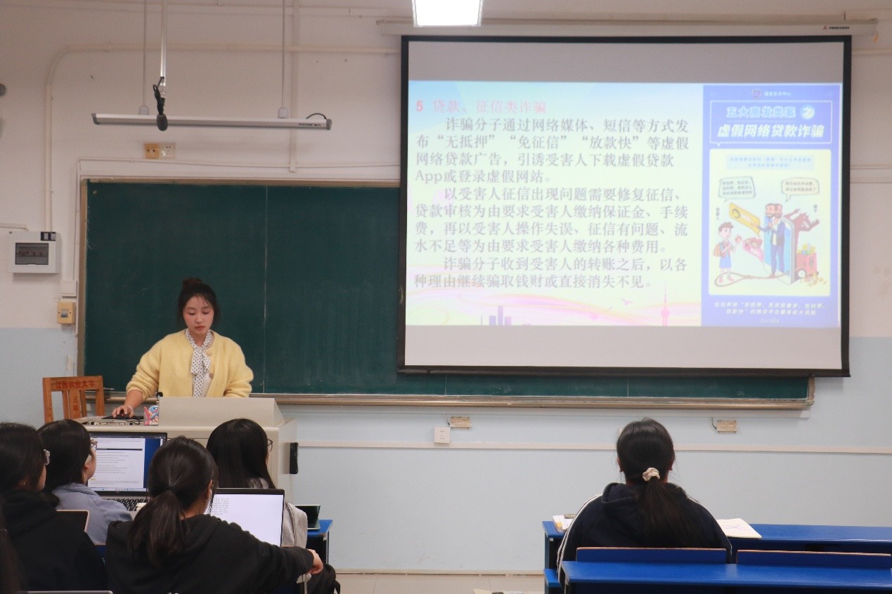 为加强老员工防诈安全意识,进一步预防校园诈骗的发生,近日,公司于新生自习教室开展以“谨防电信诈骗,加强安全意识”为主题的反诈宣讲活动。本次活动由公司反诈宣讲队主讲,2025级全体新生到场参与。