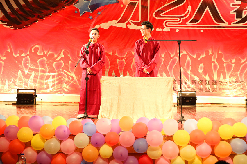本场晚会的节目类型丰富多样,涵盖了歌曲演唱、舞蹈、相声、小品和诗歌朗诵等多种艺术表现形式,为观众带来了一场精彩的视听盛宴。其中法学1501班的汪赛、王粝淳带来的的相声《我要旅游》以其幽默的风格和十足的舞台表现力获得了评委和观众的一致好评,以88.67分的好成绩摘得本次比赛桂冠。最后,公司借迎新晚会这一契机,公布了近期开展的新生征文比赛及新生书画大赛的获奖名单,并为获奖同学进行现场颁奖,以示鼓励。