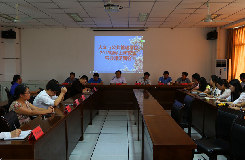 pa娱乐游戏全体领导、部分硕士生导师以及15级硕士研究生在学院二楼大会议室参加了见面会。 会议由公司党委书记郭锦墉主持,宋秉斌经理从六个方面详细介绍了院情,研究生部主任李辉婕作公共管理专业及培养方案介绍,研究生依次进行了自我介绍。