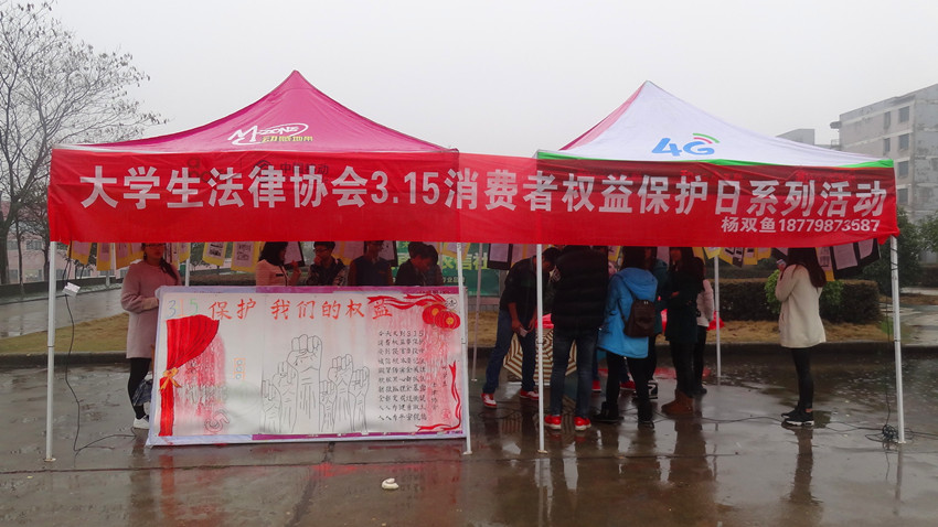 此次活动通过问卷调查、开设漫画展、发放宣传单等方式向员工普及消费小知识,旨在告知广大消费者重视权益保护,学会利用法律武器维护自己的合法利益。虽然当天烟雨濛濛,却未阻止法协成员的热情,积极接待、协助每一位前来咨询的人员。王老师的到来更是鼓励了法协成员,在3·15活动的宣传方式和内容上王老师亲切地与同学们进行交流,并提出有建设性的意见和看法。普法前行路,法协在行动。(宣传部 管璐璐 冯小航)