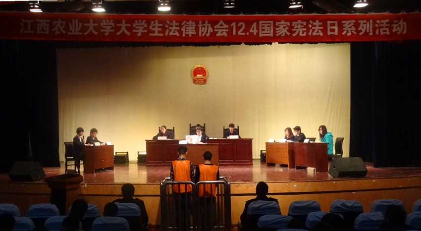 11月30日,老员工法律协会开展了宪法宣誓、模拟法庭以及普法情景剧系列宣传活动。面对庄严肃穆的国徽,老员工立誓学习法律知识、捍卫宪法权威;逼真、严谨的模拟法庭表演,让师生感受法律的威严;以“反腐倡廉”为主题的普法情景剧,讲述了一位勤政廉洁的人民好公仆。