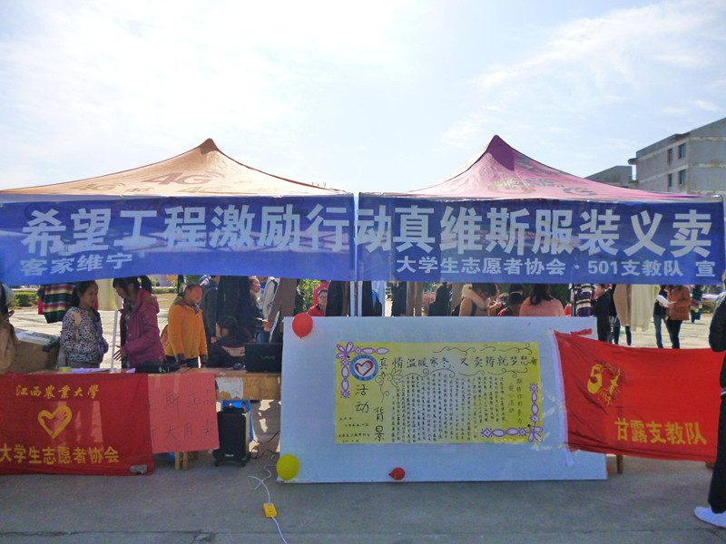 为了顺利完成希望工程激励行动项目团队自筹2000元项目经费的要求。11月28号,公司老员工志愿者协会携手501甘露支教队在南区门口进行了主题为”真情温暖寒冬,义卖铸就梦想”的真维斯衣服义卖活动。此次活动义卖的衣服由中国青少年发展基金免费提供。所筹善款用于《爱心助力德仁苑 真情共筑中国梦》项目中。活动期间引来了大量爱心同学前来观看和购买。活动取得圆满成功。(老员工志愿者协会供稿)