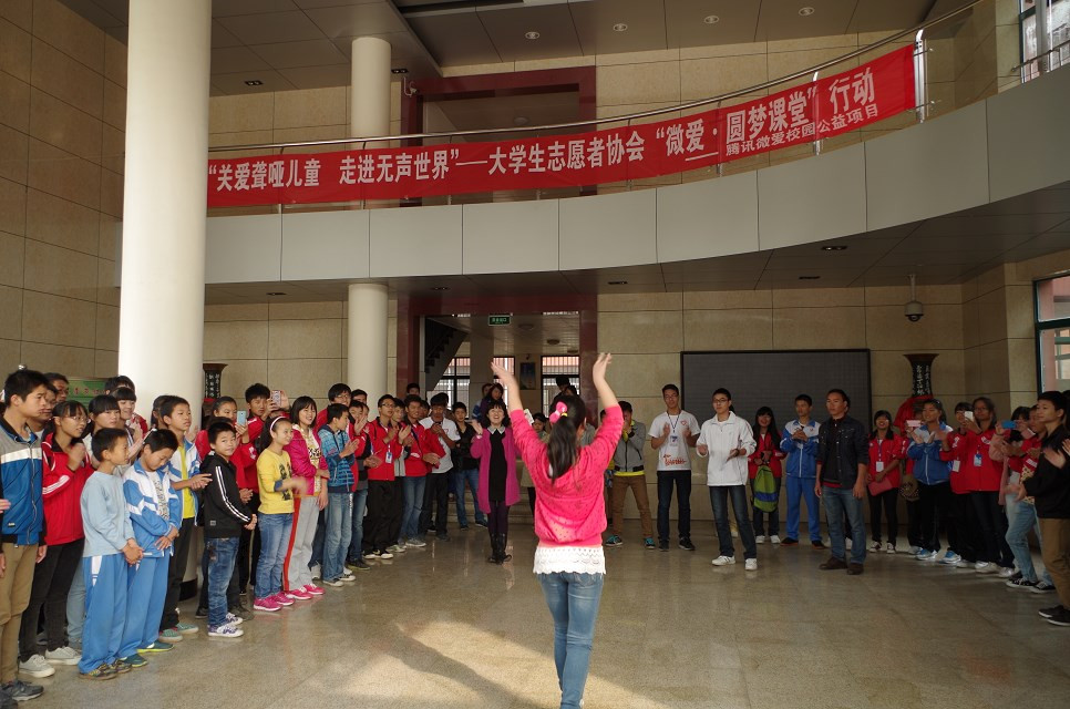 为发扬志愿精神,提高志愿者协会影响力,呼吁社会更多爱心人士加入到志愿服务队伍中来,根据前期申报的2013年腾讯微爱项目计划,11月10日公司老员工志愿者协会在院团委老师宋琳的带领下赴南昌启音聋哑儿童公司开展“微爱·圆梦课堂”行动。