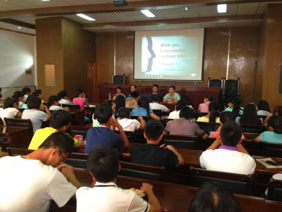 为加强13级新生对自身专业的理解,尽早进入学习状态,公司于9月22日分别于院办504和五教举办管理系、中文系专业介绍会。公司党委书记、管理系老师郭如良,党委副书记、管科1301班主任王志发,管理系主任邹晓娟,中文系主任彭晶晶及各专业老师参加介绍会。