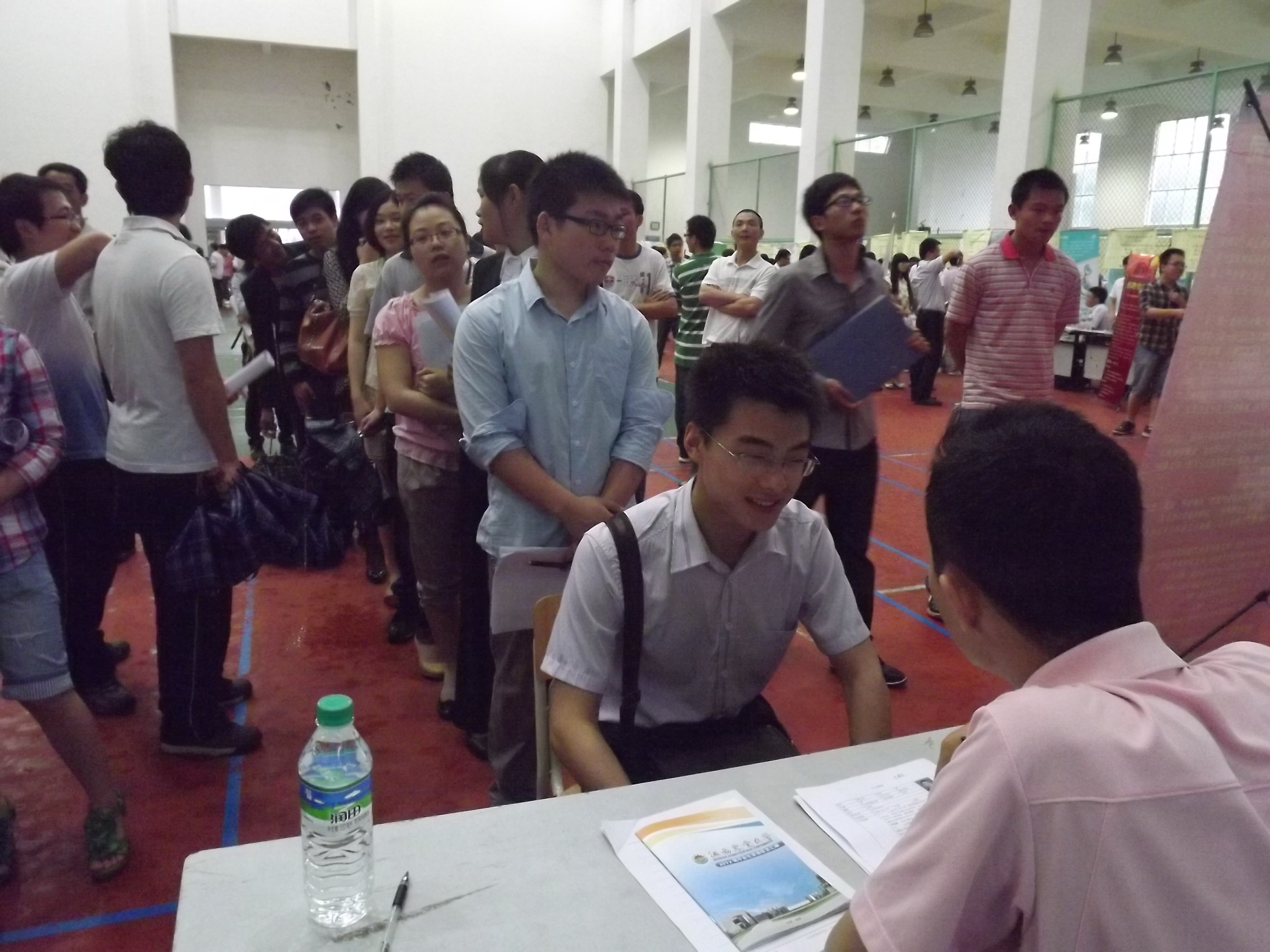 上午9时,招聘会现场随处可见应聘者手持自己精心准备好的简历,满脸自信地穿梭于人流之中,积极与招聘人员交流,主动了解用人单位的情况,积极投出简历,认真地进行初步面试。来自南昌其他各高校的同学也积极前来应聘。