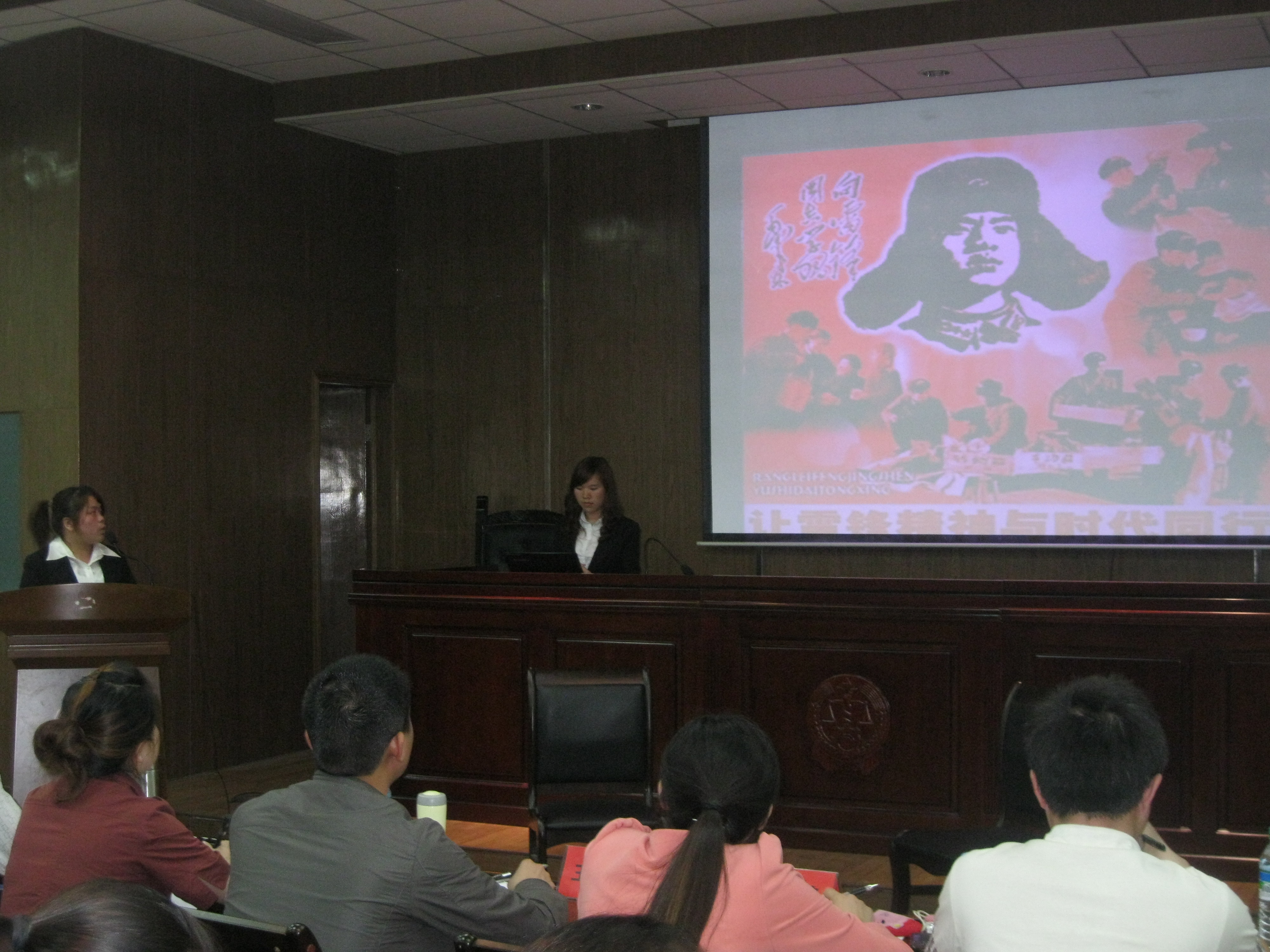 紧接着雷锋支部评选答辩的是“雷锋之星”评选。经过各班级民主评选、公司复审产生了五名“雷锋之星”候选人。此次“雷锋之星”评选,五位候选人通过演示文稿、视频短片、动感影集的展示对个人情况作了简要介绍,展示过后是候选人与主持人的座谈互动环节。其中,来自管科1001的丁齐现场再现了其志愿服务的工作情景,将此次活动引向了高潮。凭着优异的表现,丁齐同学获得了“雷锋之星”的荣誉称号。