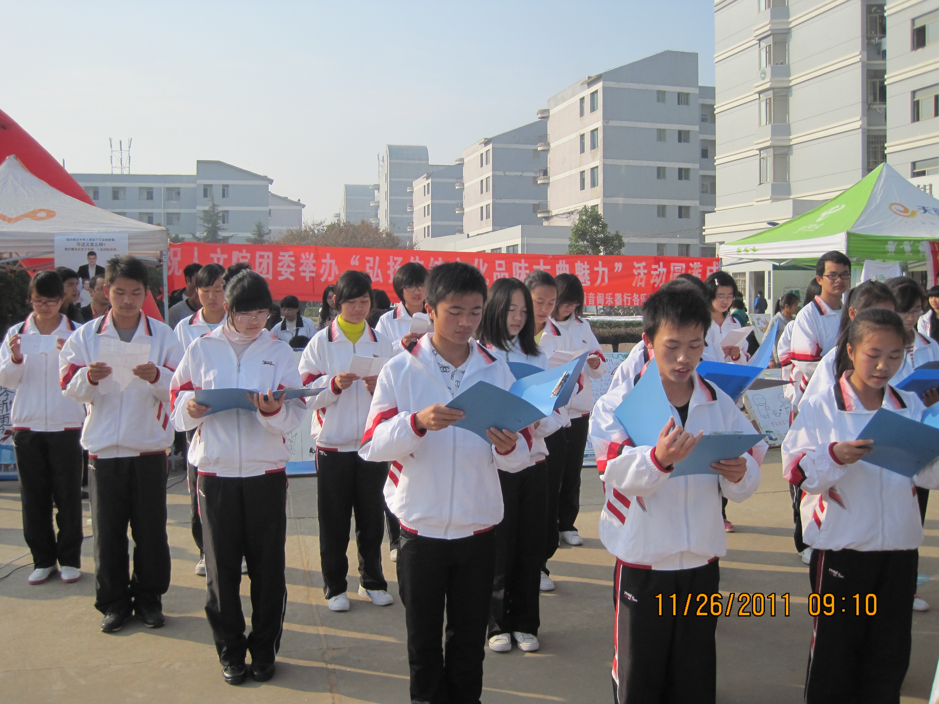为贯彻落实党的十七届六中全会精神,加强文化继承与建设创新,弘扬人文精神,建设文化强校,11月26日上午,由pa娱乐游戏团委主办的“弘扬传统文化,品味古典魅力”团日活动在南区文化广场举行。人文公司党委副书记王志发、团委书记陈小志老师及团委指导老师蔡火凤、刘琳出席了本次活动。