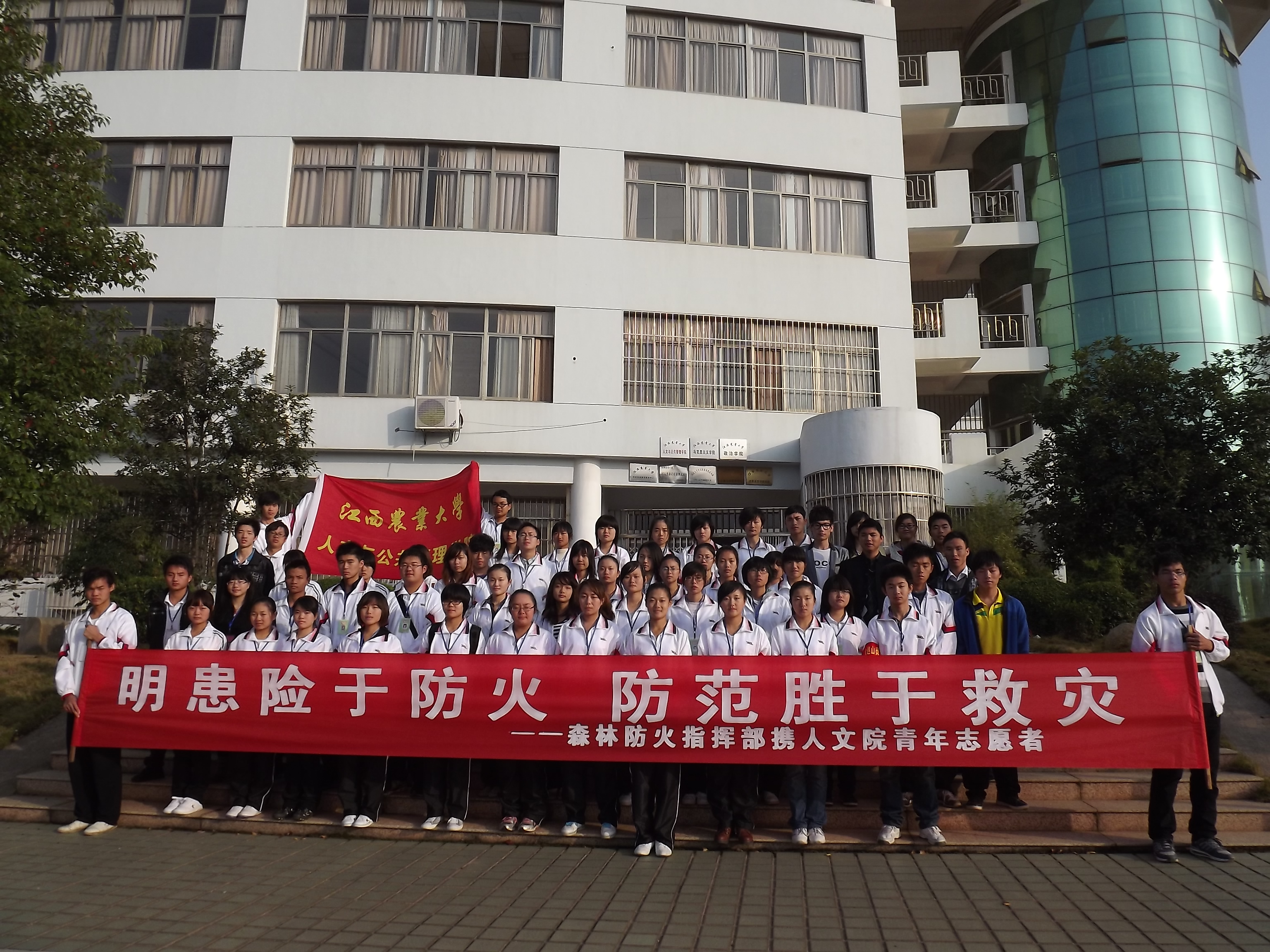 人文与公共管理院携手校森林防火指挥部开展“后山森林防火”活动