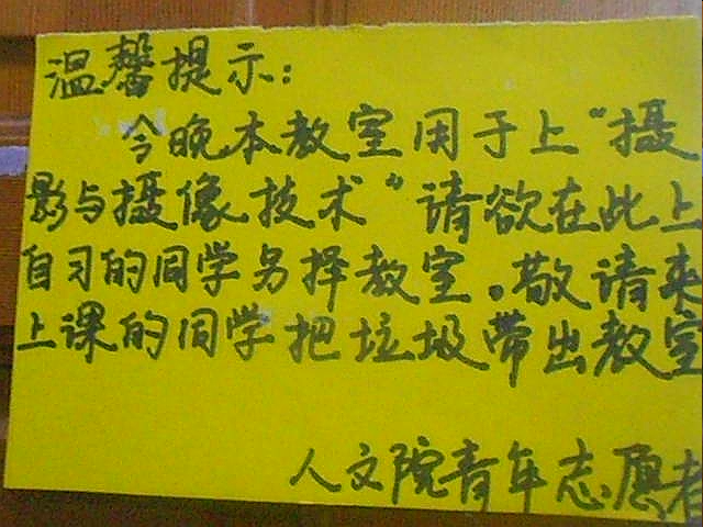 一直以来,公司志愿者们一直在开展“温馨提示”活动,即在五教教室黑板上书写校园文化建设提示语,在二教教室门上张贴温馨提示,传播教室文化和课桌文化,旨在为同学们营造一个和谐、文明的学习环境。据悉,这项活动会持续到本月19日。