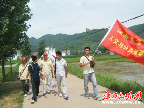 江西农大pa娱乐游戏暑期“三下乡”社会实践营队在省级新农村建设示范点——八都村坳上郭感受农村新貌。