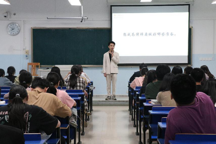 分享会上,王子渊以“我为何会选择成为律师”为切入点,围绕律师行业前景与职业属性、工作内容及专业素养三个方面,向同学们分享了他的理解和感悟。过程中,他分析了当前律师行业的宏观大背景,指出律师作为社会主义法治工作者,专业性强、社会需求量大的同时也伴随着巨大的竞争压力,进入律师行业需要面对很多的挑战。随后,他结合个人职业经验,详细介绍了律师的具体工作和实习内容,让同学们对律师有了更深的了解。此外,他谈到律师的专业素养,强调一名合格的律师不仅是意志坚定、实事求是的,更具备迅速获取信息的能力和强大的说服力,可以切实保护委托人的合法权益。在最后的互动环节中,他认真为学子们答疑解惑,并激励同学们要时刻保持学法的初心,刻苦钻研、勇于实践,不断为自身赋能。